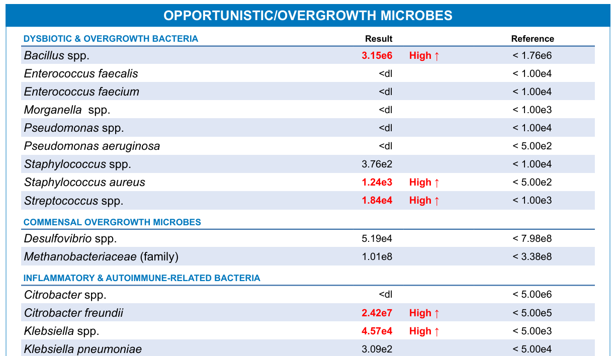 Genova Diagnostics GI Effects Panel - high inflammation, moderate dysbiosis (my dysbiosis became more severe later)